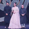 Akshay Kumar, Manushi Chillar and Chandraprakash Dwivedi pose for a picture during the trailer launch of Bollywood film 'Prithviraj' held at Yash Raj Studios in Mumbai.