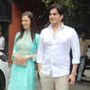 Soha Ali Khan poses with hubby Kunal Kemmu and daughter Inaaya Naumi Kemmu during Arpita Khan Sharma's Ganesh Visarjan ceremony held at her residence in Mumbai. (Photo: Yogen Shah) See more of :