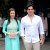 Maanayata Dutt and Sanjay Dutt look great together as they pose for the shutterbugs during Arpita Khan Sharma's Ganesh Visarjan ceremony held at her residence in Mumbai. (BCCL/Prashant Jadhav)See more of :
