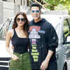 Akshay Kumar and Vaani Kapoor share a warm hug during the promotion of Bollywood film 'Bell Bottom' in Mumbai.