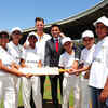 Brett Lee in action while Subodh Runwal looks on during the launch of the Cricket Education Program held at CCI in Mumbai - Photogallery