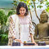 Janhvi Kapoor looks pretty in a traditional wear as she cuts the cake during her birthday celebration held at her residence in Mumbai.  (BCCL/Prathamesh Bandekar)
