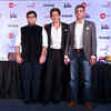 Filmfare editor Jitesh Pillai, Shah Rukh Khan, Worldwide Media CEO Deepak Lamba during the Jio Filmfare Awards 2018 press conference at Taj Lands End, Bandra in Mumbai on December 26, 2017. (BCCL/Prashant Jadhav)