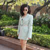 Taapsee Pannu ups the style quotient in a mint green cutout blazer dress as she strikes a pose during the promotion of Bollywood film 'Looop Lapeta' in Mumbai.