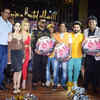 Mukesh Rishi, Urfi Javed, Rakhi Sawant, Rakesh Sawant, Eshan Masih, Rajeev Khinchi and others pose together during the music launch of 'Lover Boy' in Mumbai.