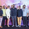 Resul Pookutty, Radha Krishna Kumar, Pooja Hegde, Prabhas, Bhushan Kumar, Pramod Uppalapati and Vamsi pose together during the trailer launch of the film 'Radhe Shyam' in Mumbai.
