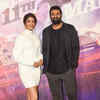Pooja Hegde and Prabhas smile for the shutterbugs during the trailer launch of the film 'Radhe Shyam' in Mumbai.