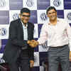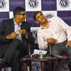 Atul Maru and Prakash Padukone smile for the shutterbugs during the launch of a badminton coaching program at NSCI in Mumbai.