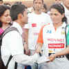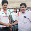 Vijender Singh Indian boxer (left) and Nitin Gadkarishake during the 'Go For Gold' event at Yeshwant Stadium. (BCCL)