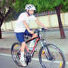 Pravin V Patil during a cycling rally, in Pune.  (BCCL)