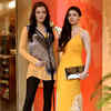Kristina Akeeva and Sara Loren pose together at the launch of designer Ritu Kumar's monsoon collection, held in Mumbai, on July 11, 2013. (Pic: Viral Bhayani)