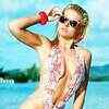 Water baby: This one piece swimsuit don't give too much away, and is beautifully complemented by the accessories. (Pic: Daily Mirror)