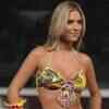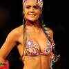 A model displays a design from Agua Bendita collection in Medellin, Colombia, Thursday, Oct. 30, 2008. (AP Photo/Luis Benavides)