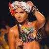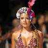 A model displays a creation by Colombian firm Agua Bendita during the Colombiamoda Fashion Week on Tuesday, July 10, 2007, in Medellin, department of Antioquia, Colombia. (AFP Photo/Gerardo Gomez)