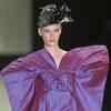 Butterfly in making: A model wears a butterfly shaped purple dress. (AP Photo/ Andre Penner)