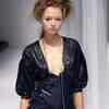 A model displays creations by Japanese designer Naomi Yamamoto at the tiny dinosaur 2009 Spring/Summer Tokyo collection during the Japan Fashion Week in Tokyo on September 3, 2008. (AP Photo/Shizuo Kambayashi)