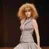 A model displays a geometricaly patterned one-piece dress during Noriko Fukushima 2009 spring/summer collection, a part of the Japan Fashion Week in Tokyo on September 3, 2008. (AFP Photo/Yoshikazu Tsuno)
