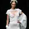 A model displays a creation by Russian fashion designer Liudmila Norsoyan during the Russian fashion week on October 28, 2008 in Moscow. (AFP Photo/Dmitry Kostyukov)
