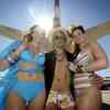 (From L to R) Models Steffi, Jens and Tamiepresent flaunt the beachwear designs by the fashion labels Magistral, Gabriel Croissier and Maryan group during a photo shoot at an airport at Duesseldorf in Germany Tuesday, July 15, 2008. (AFP Photo/Volker Hartmann)