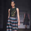 A model showcases a creation by designer Pankaj & Nidhi on Day 3 of the Amazon India Fashion Week (AIFW) Autumn-Winter 2016 held at Jawaharlal Nehru Stadium in New Delhi. (BCCL/Ranjit Kumar)
