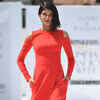 Rachel showcases a creation by designer Gauri and Nainika on Day 5 of the Amazon India Fashion Week (AIFW) Autumn-Winter 2016 held at Jawaharlal Nehru Stadium in New Delhi. (BCCL/Ranjit Kumar)