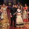 Designer Ramesh Dembla walks the ramp with actress Kriti Kharbanda on Day 3 of the Blenders Pride Bangalore Fashion Week (BPBFW) 2013 in Bangalore.