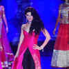 Jacqueline Fernandez displays a creation by designer Jyotsna Tiwari on Day 2 of India Bridal Fashion Week in New Delhi on July 24, 2013. (BCCL/Ranjit Kumar)