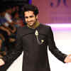 Ayushmann Khurrana walks the ramp to showcase jewellery creations by designer group Jewels By Preeti during the third season of India International Jewellery Week (IIJW) in Mumbai on August 20, 2012