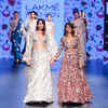 Monica Dogra and Shibani Dandekar walk the ramp for designer Payal Singhal on Day 3 of the Lakme Fashion Week 2016 in Mumbai. (BCCL/Tejas Kudtarkar)