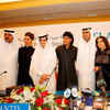 Team of Farah Khan's film Happy New Year starring Shah Rukh Khan, Deepika Padukone, Boman Irani and Abhishek Bachchan attend a press conference in Dubai. The actors were seen a traditional Arabian outfits in the form of kanduras and headgears!
