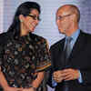 UK Minister of Trade Investment and Business Lord Mervyn Davies (L) has a word with HSBC CEO, Naina Kidwai during the 'UK Trade and Investment India Business Awards 2009' in Mumbai  (PTI)