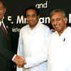 Thailand Deputy Prime Minister and Minister of Industry, Kosit Panpiemras (L) shakes hands with Indian Minister of The Department of North Eastern States (DoNER) and Minister for Rural Development and Panchayat Mani Shankar Aiyar (R) as Indian Commerce and Industry Minister Kamal Nath (C) looks on during a business meeting in New Delhi on Friday, August 31, 2007. (AFP Photo/Raveendran)