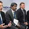 From left, President and CEO of Nokia Corporation, Olli-Pekka Kallasvuo, Nokia Vice President and Country General Manager, D Shiva Kumar, Senior Vice President Nokia APAC, Upro Karjal Ainen and Country Head, India sub region, Ashish Choudhary at a press conference, in New Delhi on Thursday, August 23, 2007. (PTI/Photo Vijay Verma)