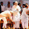 Senior BJP leader LK Advani and Narendra Modi shared a public platform for the first time after the declaration of the party's prime ministerial candidate. Narendra Modi is seen touching the feet of cold-looking LK Advani.