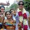 Mamta Sodha (R), who recently scaled the Mt Everest, flashes the victory sign, along with supporters during a felicitation function in Gurgaon - Photogallery
