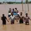 Villagers wade and ride a tractor to safety through flood waters near Patiala in Punjab on July 7, 2010. (PTI)