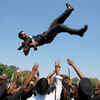 Newly commissioned army officers lift one of their colleagues in air as they jubilate after their passing out parade at Indian Military Academy in Dehradun. (PTI)