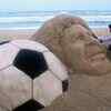 Sand artist Sudarsan Pattnaik creates a sculpture of Argentine soccer team coach Diego Maradona beside a replica of a football in Puri. (PTI)