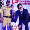 Bollywood actor Amitabh Bachchan felicitate Mumbai police bomb detection squad member sniffer dog Max at 'Pawsitive Peoples' Awards' n Mumbai. (PTI)
