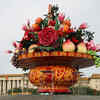 A giant vase with arrangement of flowers and fruit is erected at Tiananmen Square ahead of China's 64th National Day on September 24, 2013 in Beijing, China. China will mark the 64th anniversary of the founding of the People's Republic of China as they celebrate National Day on October 1. (Getty Images)