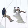 A photographer takes pictures of Fang Jing (R) in a wedding gown next to her husband, surnamed Zhao, as they hang from a cliff during a rock climbing exercise in Liuzhou, Guangxi Zhuang Autonomous Region. The couple love outdoor sports and they decided to have their wedding photos taken during rock climbing, local media reported. ()See more of :