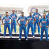 Indian team players pose for a photograph in their new jersey in Rajkot. (PTI)