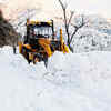 An earth remover clearing the snow from Mughal Road in Poonch district of Jammu and Kashmir (PTI)