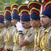 A policeman adjusts his headgear before a wreath-laying ceremony at the Gymkhana police memorial marking the November 2008 Mumbai attacks, in Mumbai. (PTI)