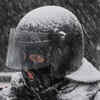 A member of the interior ministry stands guard at a pro-EU protest during snowfall on a street in Kiev. (BCCL)