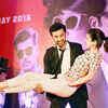 Ranbir Kapoor lifts Anushka Sharma infront of media while performing on a song at the trailer launch of Anurag Kashyap`s much-awaited film Bombay Velvet in Mumbai - Photogallery