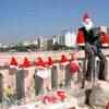 A trader from Bundi in Rajasthan wearing a Santa mask sits on the parapet of Nehru Bridge - Photogallery