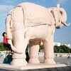 Girl clings to a tale of an elephant statue at Ambedkar Park, dedicated to dalits or India’s low-castes, which was opened to the public Wednesday