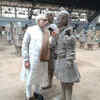 Narendra Modi inspects a sculpture of the Terracotta Army, a World Heritage Site, in the city of Xian in northwest China's Shaanxi province on May 14, 2015. (PTI)