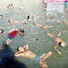 People perform Jal Yoga in Varanasi on Saturday ahead of Yoga Day. (PTI)